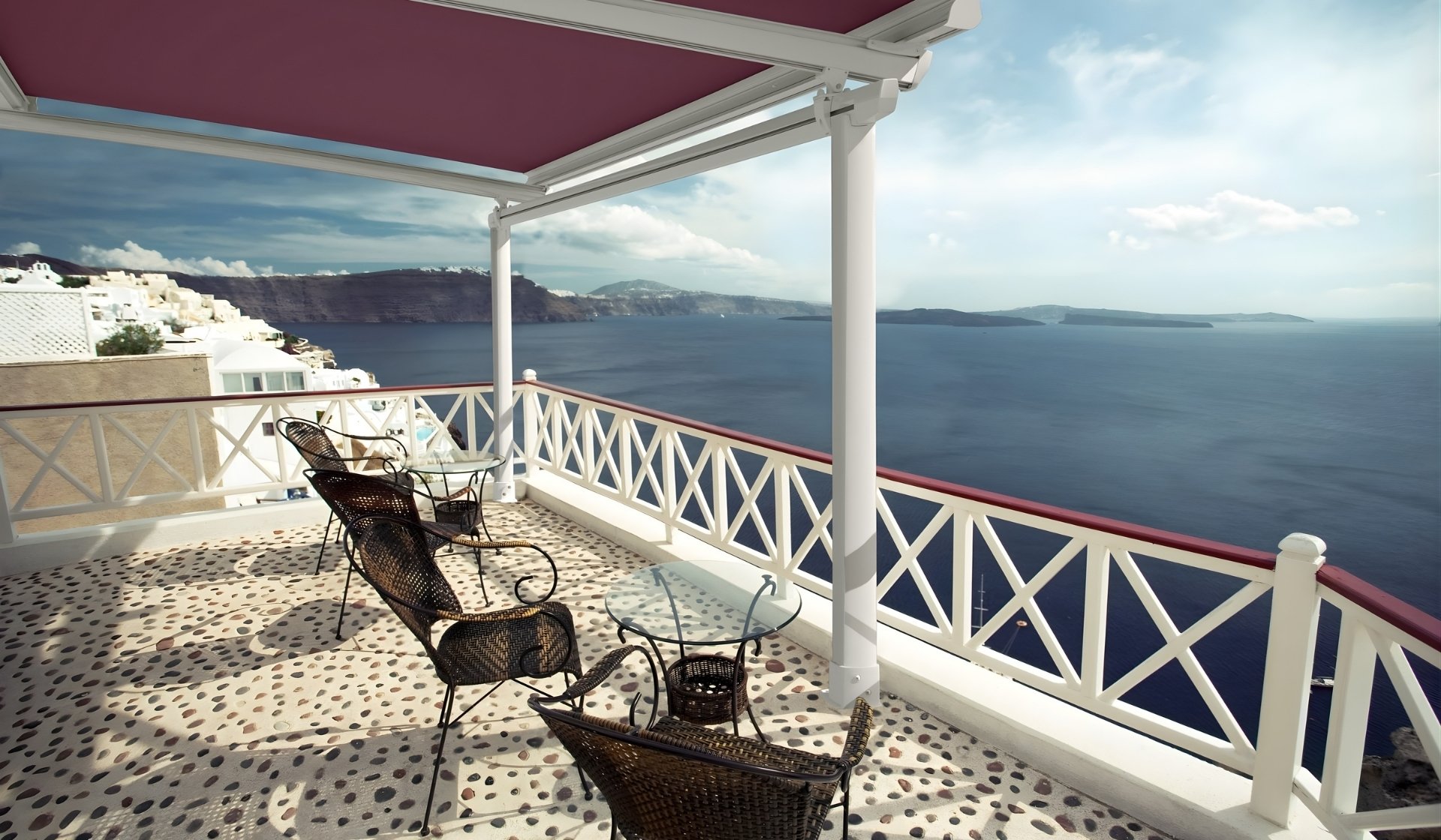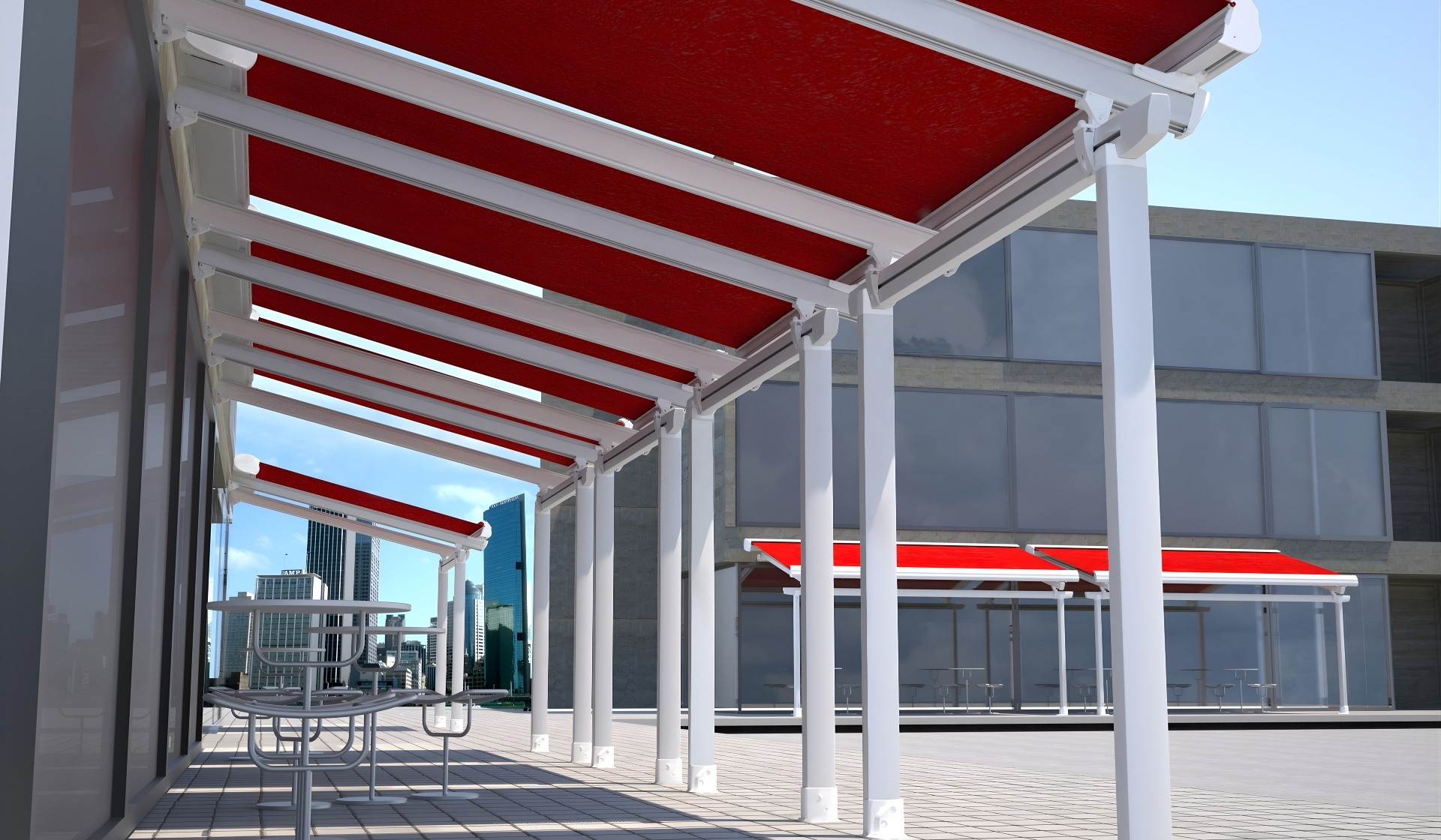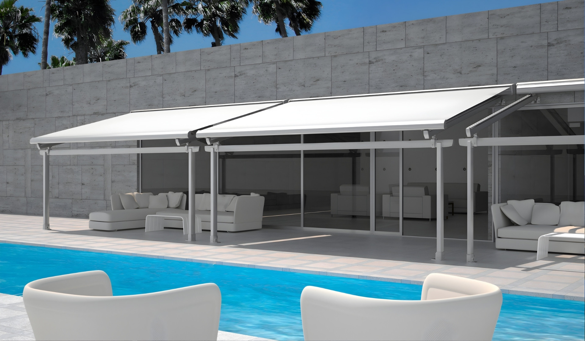 Eos is a veranda system. Its main function is to protect glass housings up to 6,00 x 5,00 and roofs with elegance and personality. Eos offers not only sun protection but also thermal insulation. This excellent quality system has unbelievable features. Its inclination allows easy drainage of water and decorates the warm environments with elegance.