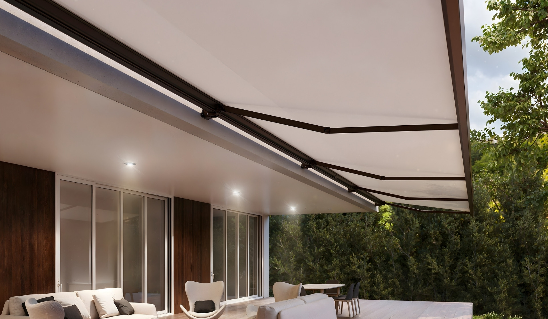 We present Kali, our rectangular cassette with clean, straight lines, designed for projects requiring a modern and architectural aesthetic. Kali stands out as a multi-arm cassette for large dimensions, capable of covering up to 14 m × 3.5 m in Category 2, thanks to the connection of the profiles.