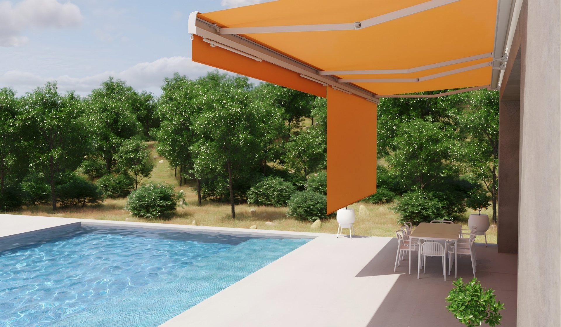 Awning with a protective closure cassette, extremely quiet.